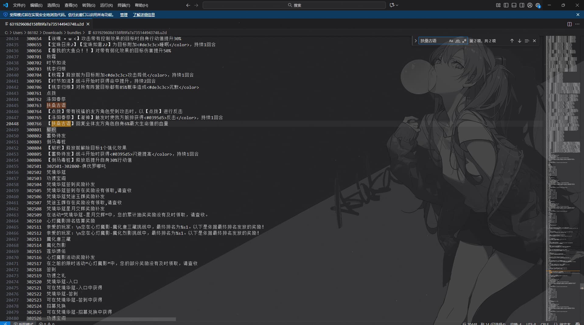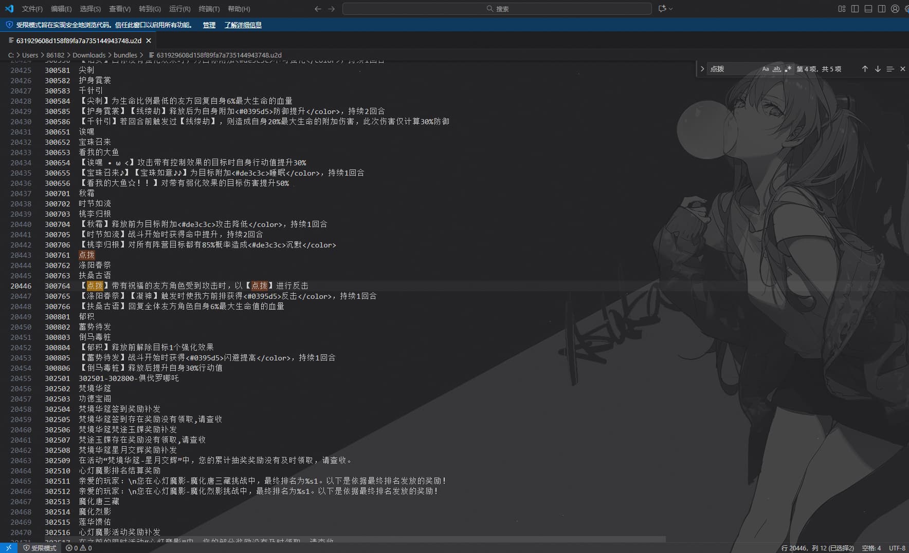 这里面少了很多东西啊角色名字、技能名字、道具名字啥都没有 是我用txt打开的方法不对吗?