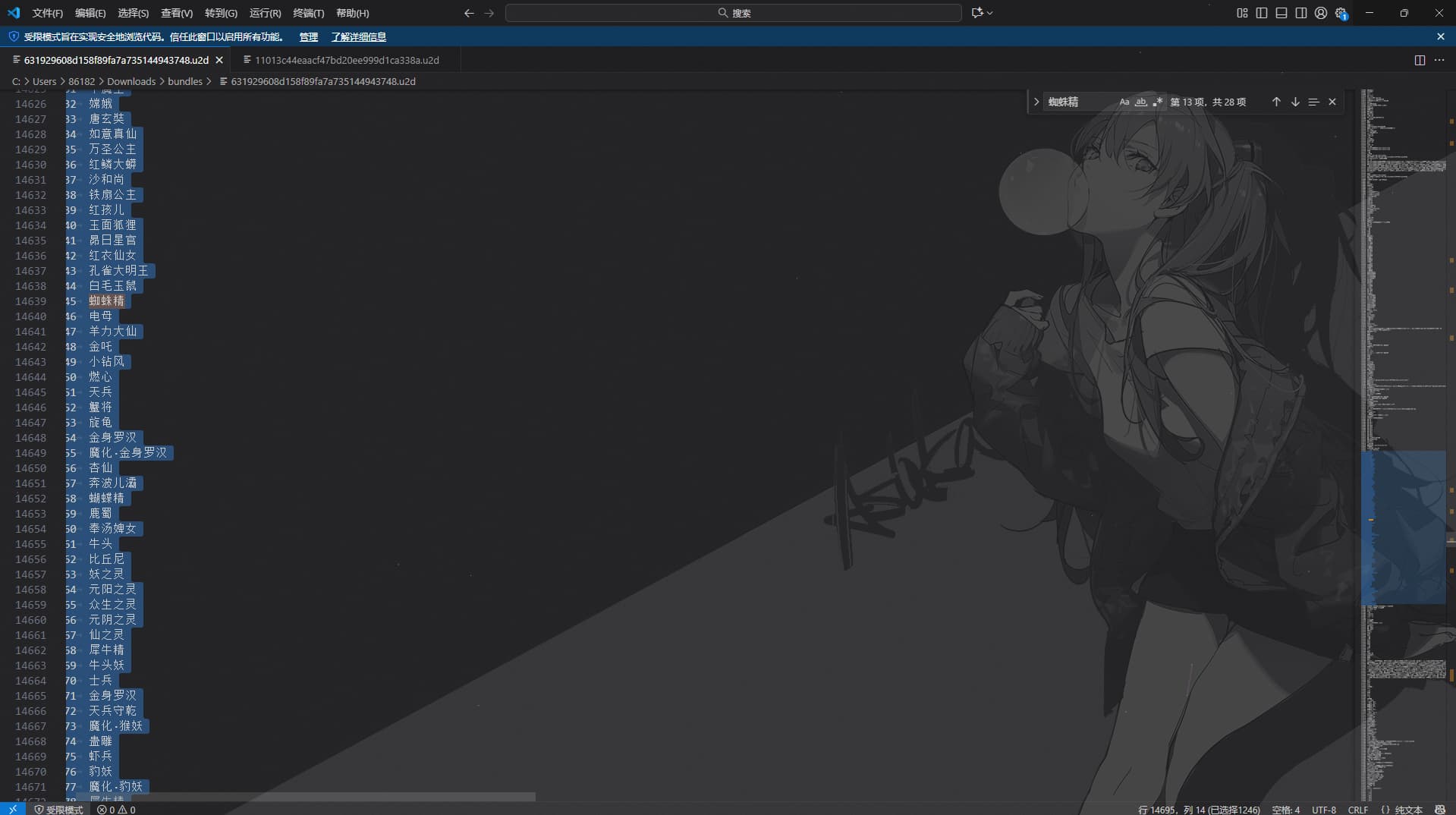 就是让你用Asset studio把所有资源导出,然后搜索