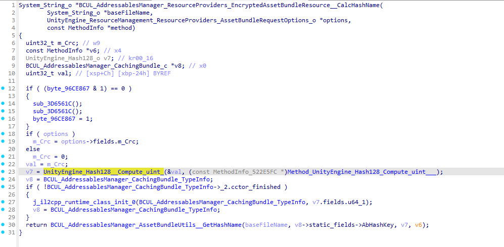 感觉大致的加密流程应该是crc→hash128—>bundleName+hash128+abhashkey—>sha256—>X2,不过crc的加密过程好像不是常规的SpookyHash,而且连接符也不太确定,没逆向,根据上面的代码片段研究了半天,提供一个思路看对不对