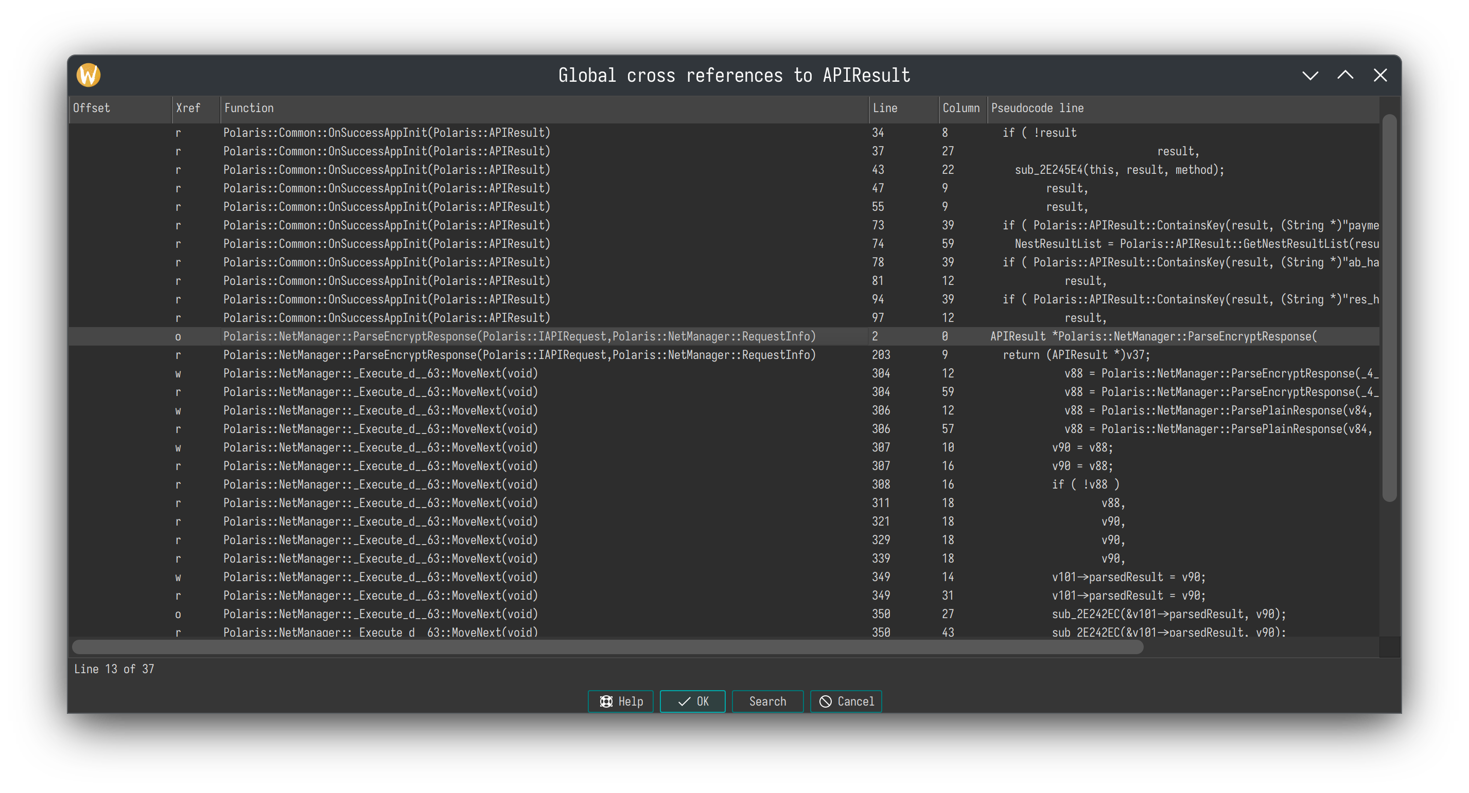 APIResult *result xref globally, 轻松找到Polaris::NetManager::ParseEncryptResponse看代码,首先是用MiniMessagePacker::Unpack解包(传入前提前base64 decode过了问题不大)