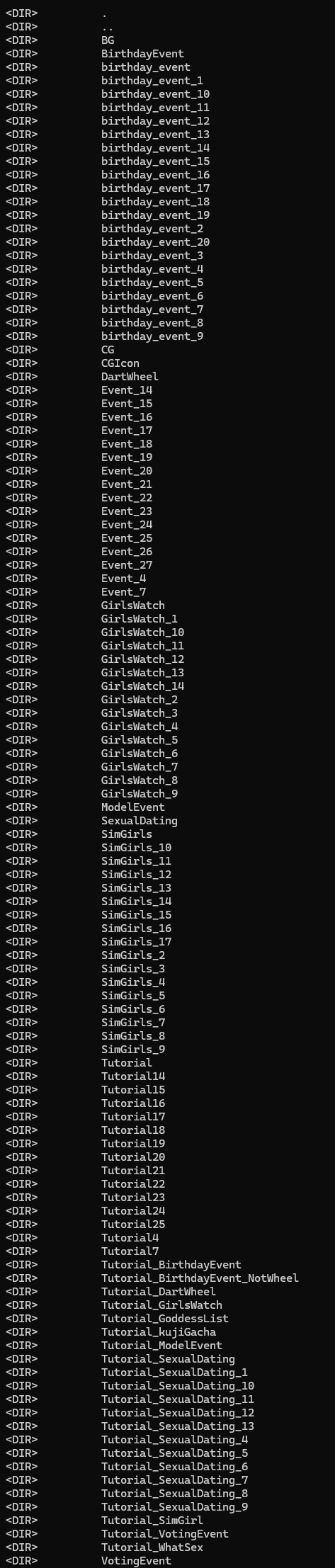QT他的文件结构很乱你甚至可以遇到多个ab包中有相同的文件(container都一样)我都不知道他们怎么打包成功的(照常理说unity会主动拒绝打包),也有相同container但是文件内容不同的情况(如果你拿到了鉴权文件sexual_dating的Event_16和Event_15的话你会发现他们的container是一样的文件内容不同)