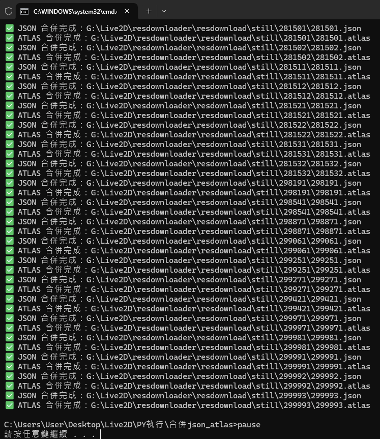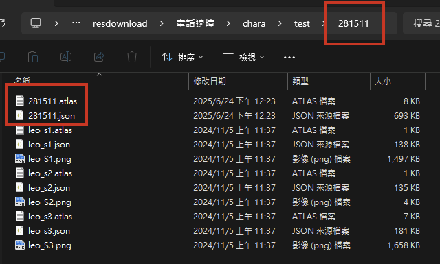 將 [童話邊境] 過濾子資料夾名稱內的json、atlas分別依照流水號合併