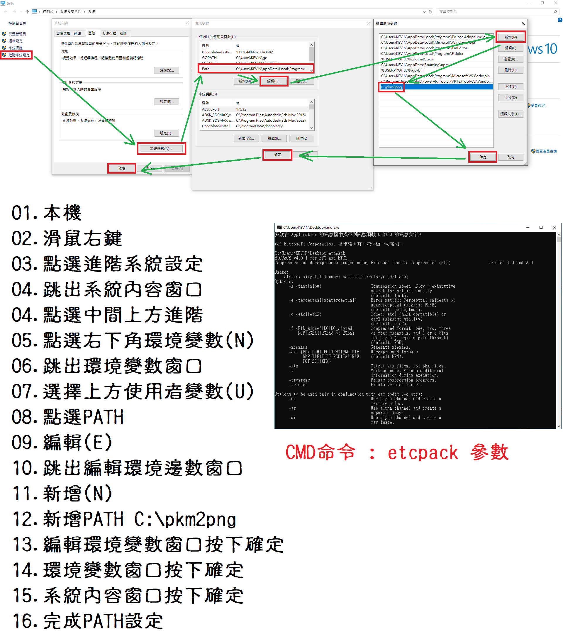要讓讓CMD命令有效呼叫程序etcpack.exe