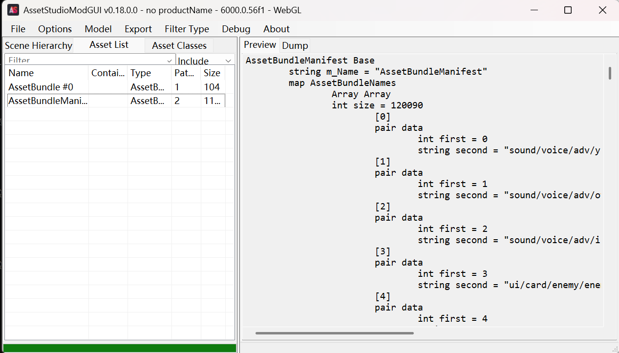 谢谢,但是我指的不是这些资源文件的地址,而是信息文件,比如一个角色他有属性值,有名字有背景故事有语音文本,寝室文件应该有eventdata,但是我们好像看不出来每个个寝室对应的哪个eventdata文件,就是说这些组织关系和文本文件可以得到吗,我没找到什么角色名字角色故事的,只有一些角色信息有关的资源路径有英文名,语音文件也没有文本,只有eventdata里有一些日文文本,嗯,大概是怎么个意思,不是指的DmmR18Web这个包里的那些资源,还是说有但是我没找到。