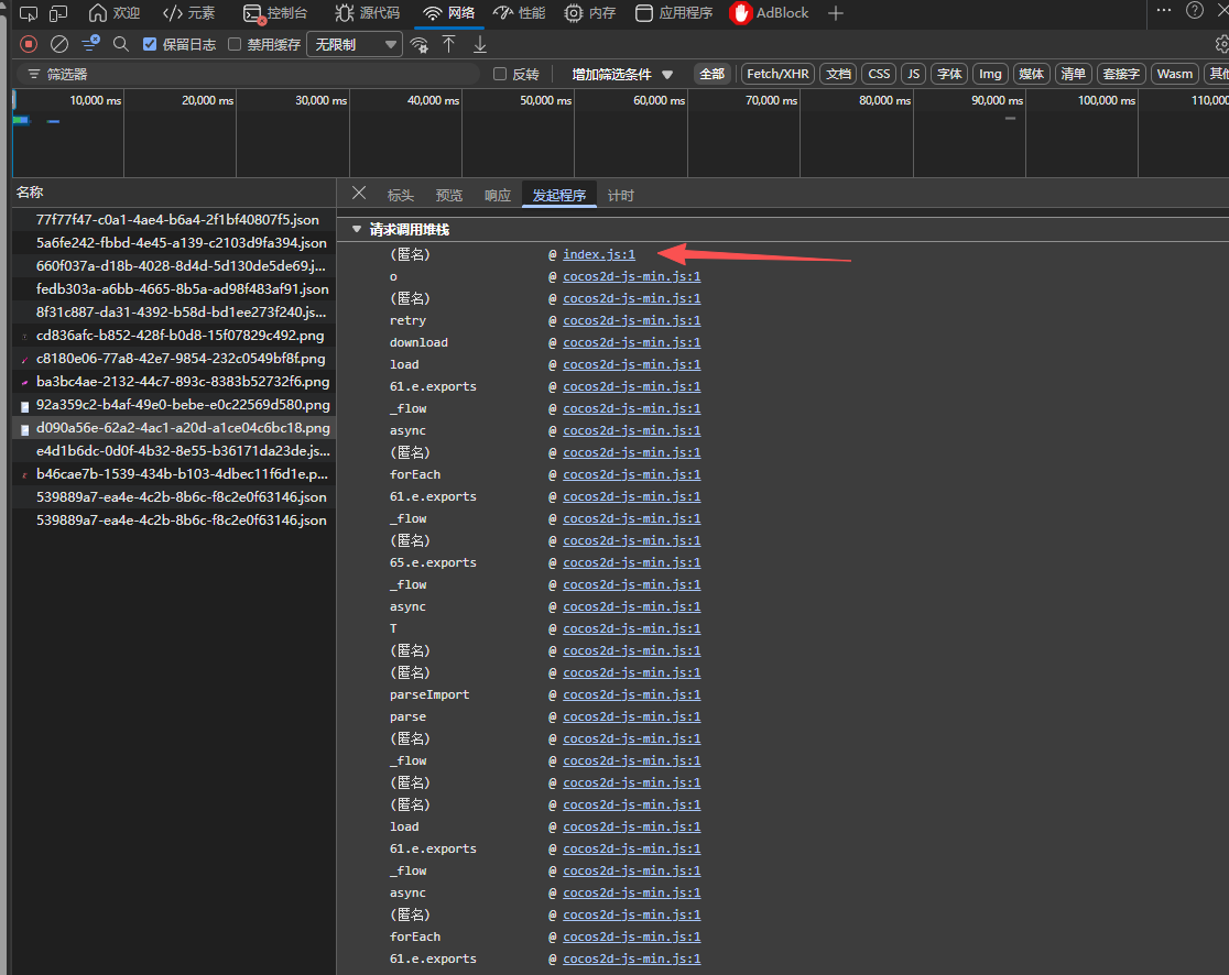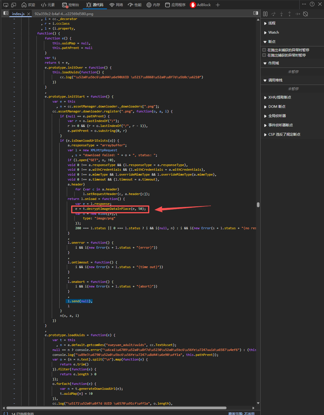 可以看到是index,js拉起的加密png下载