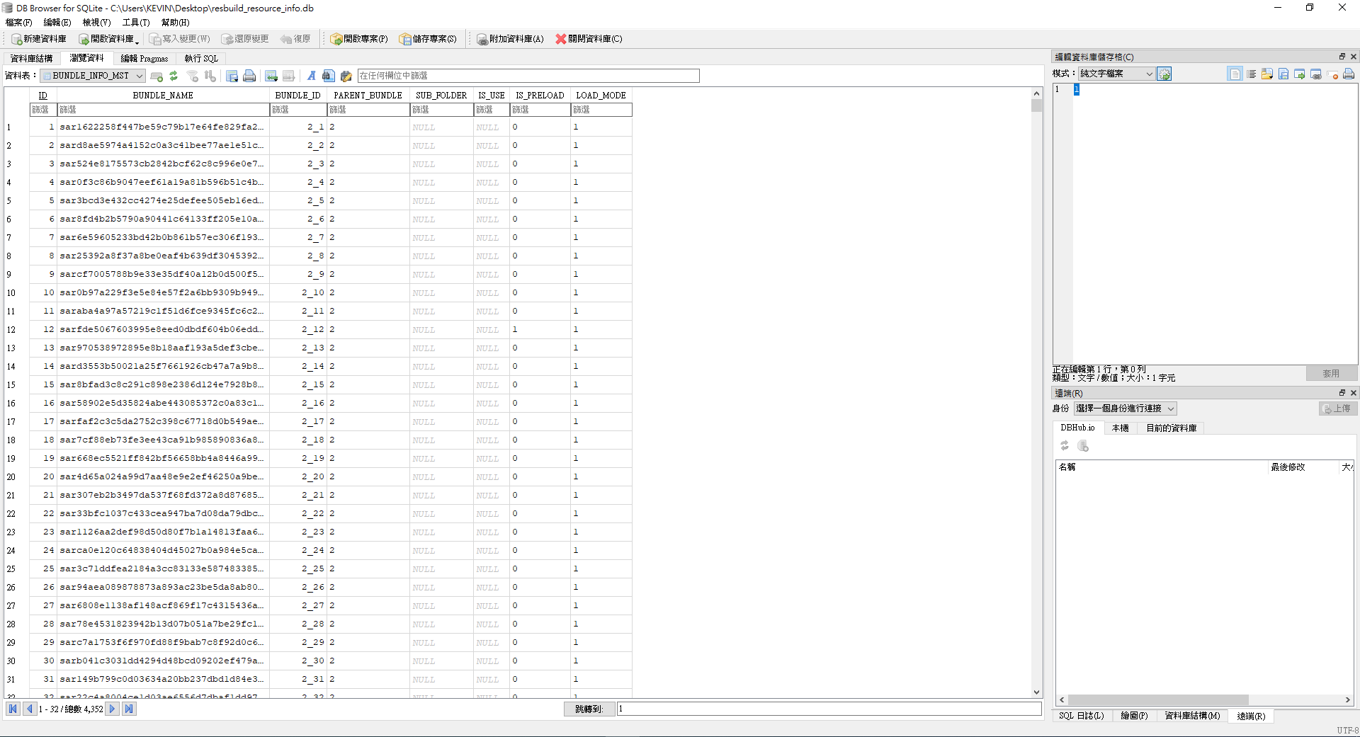 開啟 resbuild_resource_info.db 資料表 BUNDLE_INFO_MST (共4352筆資料)