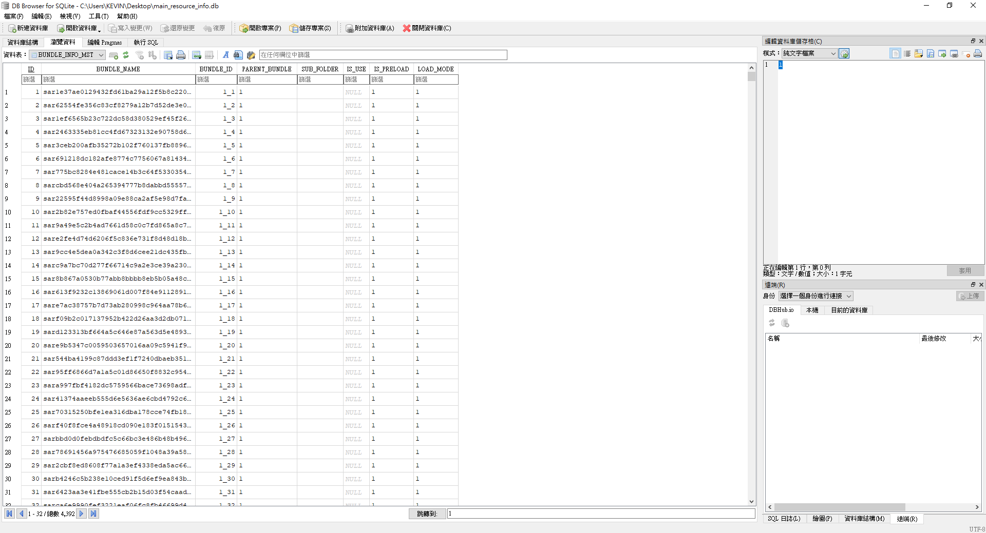 開啟 main_resource_info.db 資料表 BUNDLE_INFO_MST (共4392筆資料)