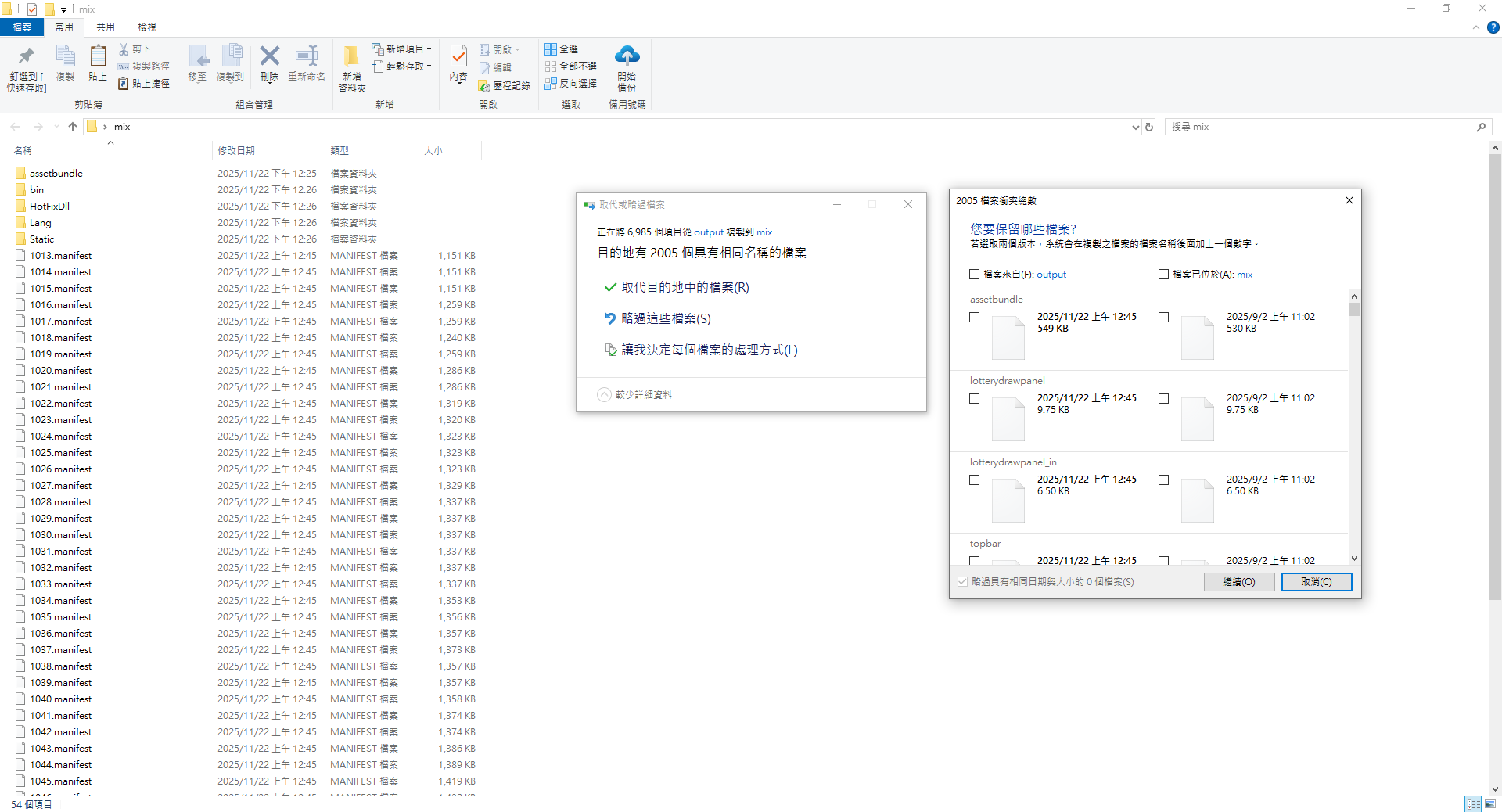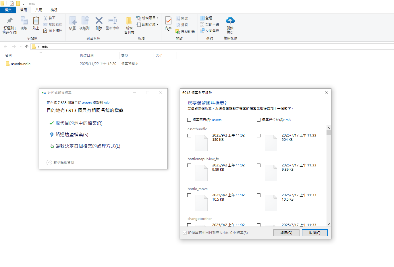 數字大的zip解壓縮資源後覆蓋