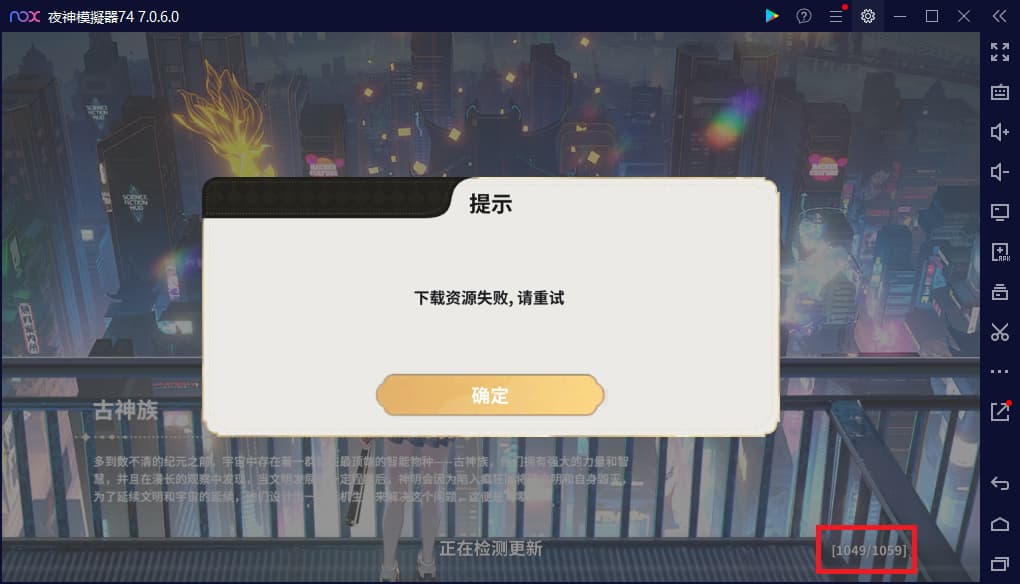 遊戲畫面中右下角顯示資源包更新進度 [1049/1059]