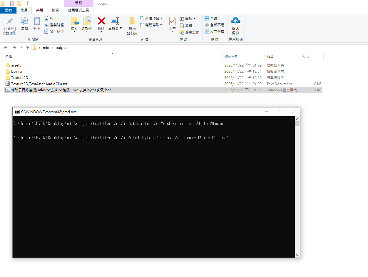 手動建立輸出目錄 (C:\Users\KEVIN\Desktop\mix\output)