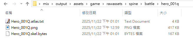 Spine文件目錄 \mix\output\assets\game\rawassets\spine