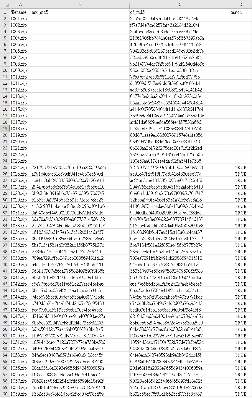 csv文件中將兩目錄同檔名放在同一個欄位做md5比較