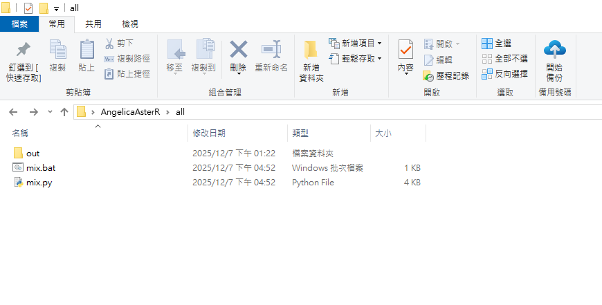 將 mix.bat 與 mix.py 放在根目錄 all 內