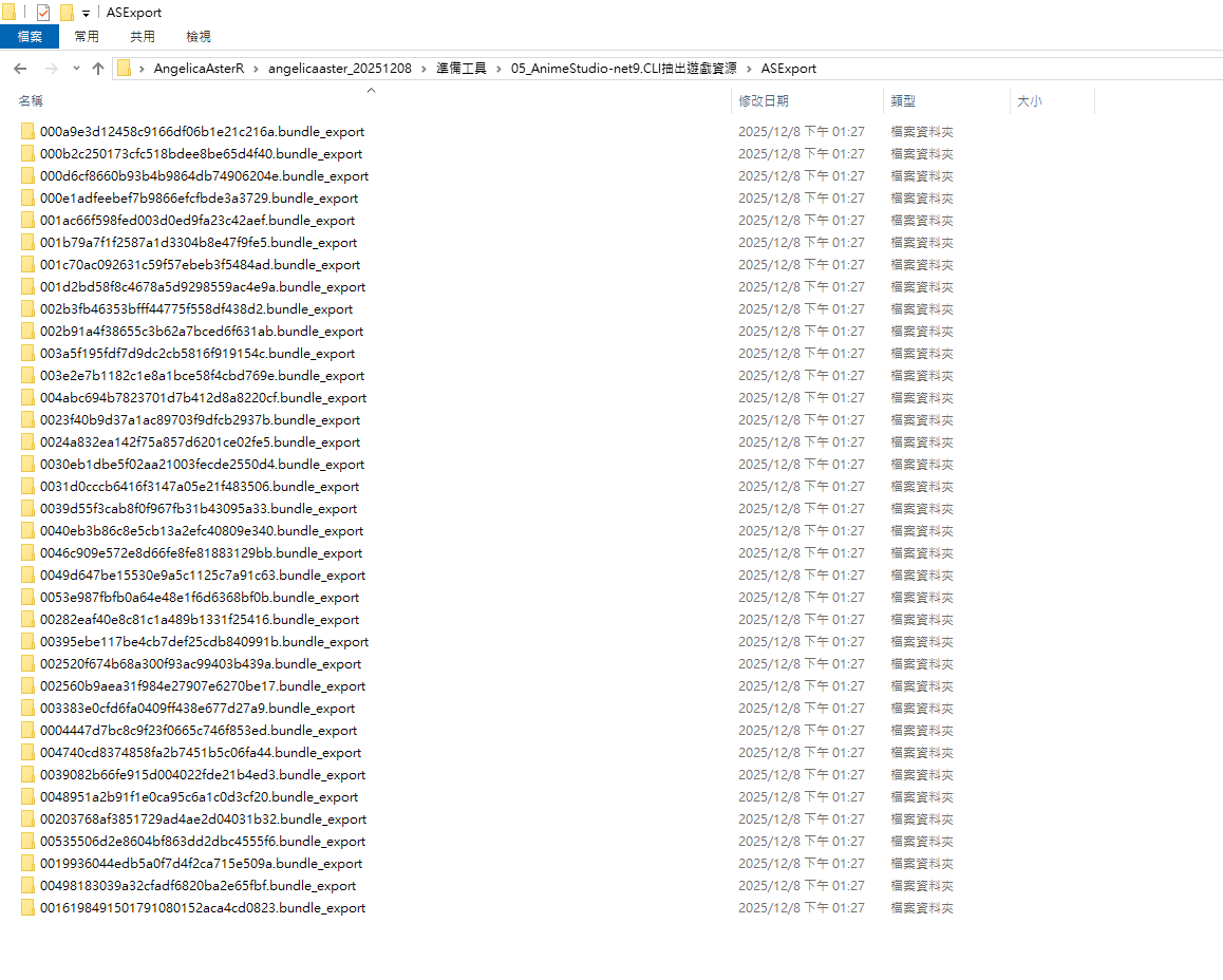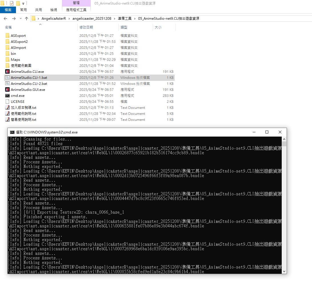 使用AnimeStudio-net9.CLI抽出遊戲資源
