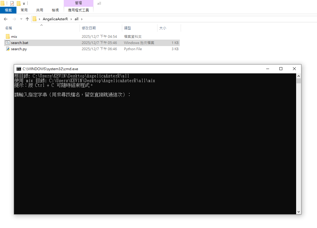 將 search.bat 與 search.py 放在根目錄 all 下