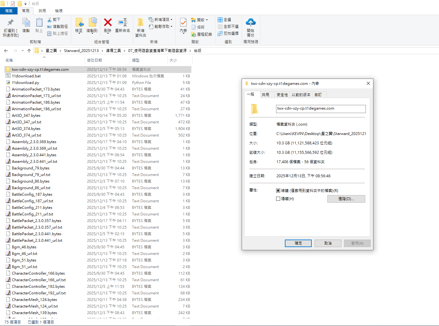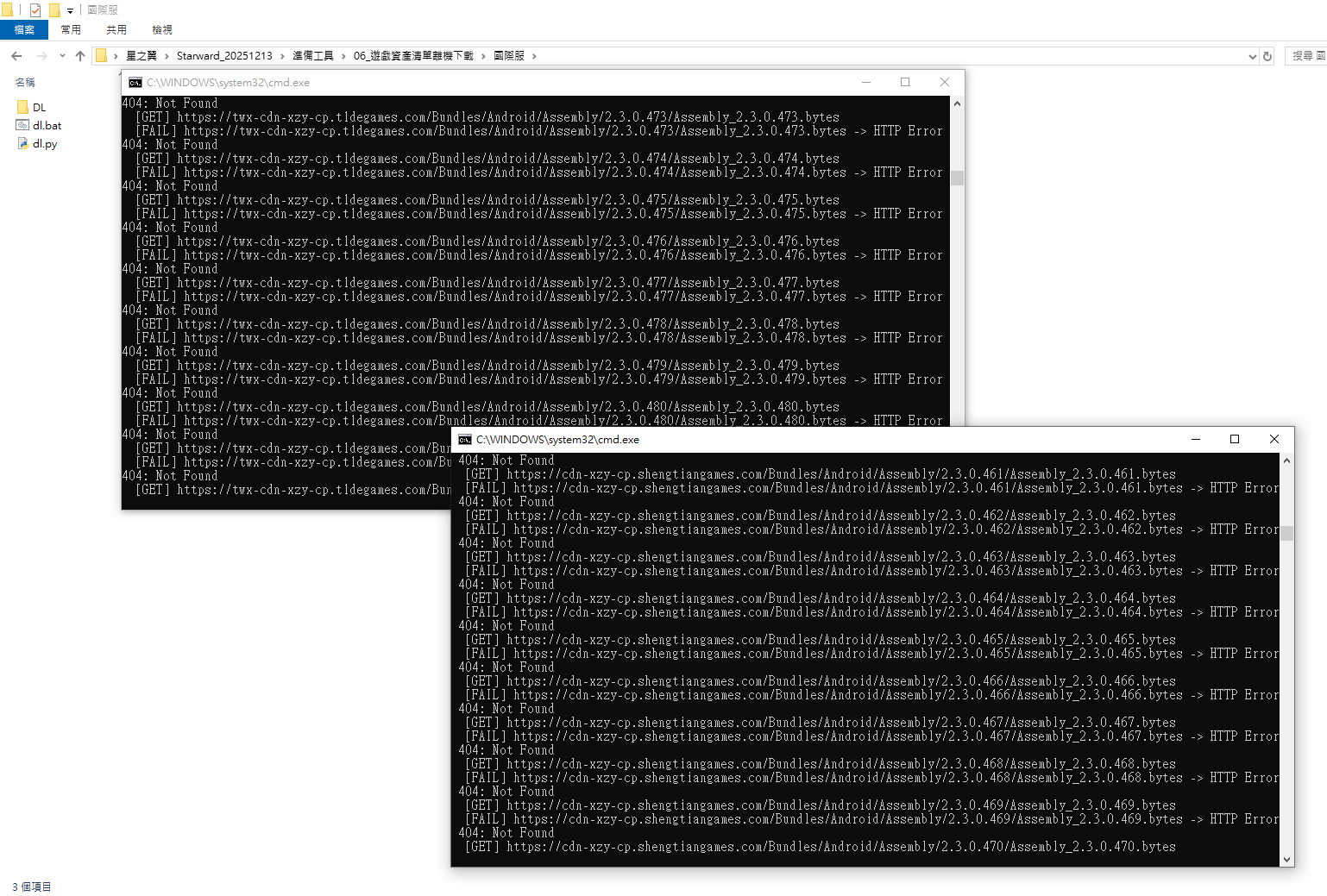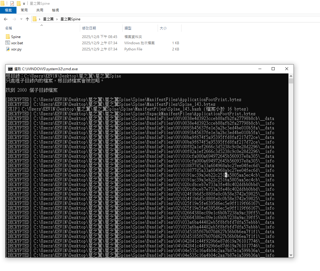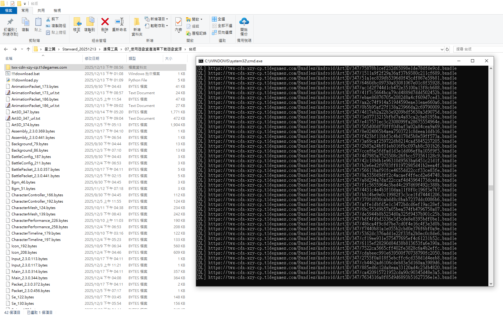將 download.bat 與 download.py 和 Spine_144.bytes 單獨放在起即可
