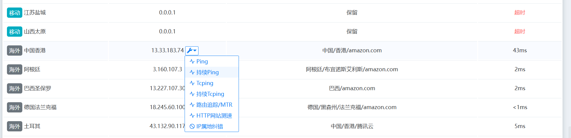 往下翻,查看能正常使用的ip,DNS解析后是0.0.0.1的用不了。鼠标放在ip上可以持续ping它,这步主要是选择延迟最低最不掉包的ip地址。