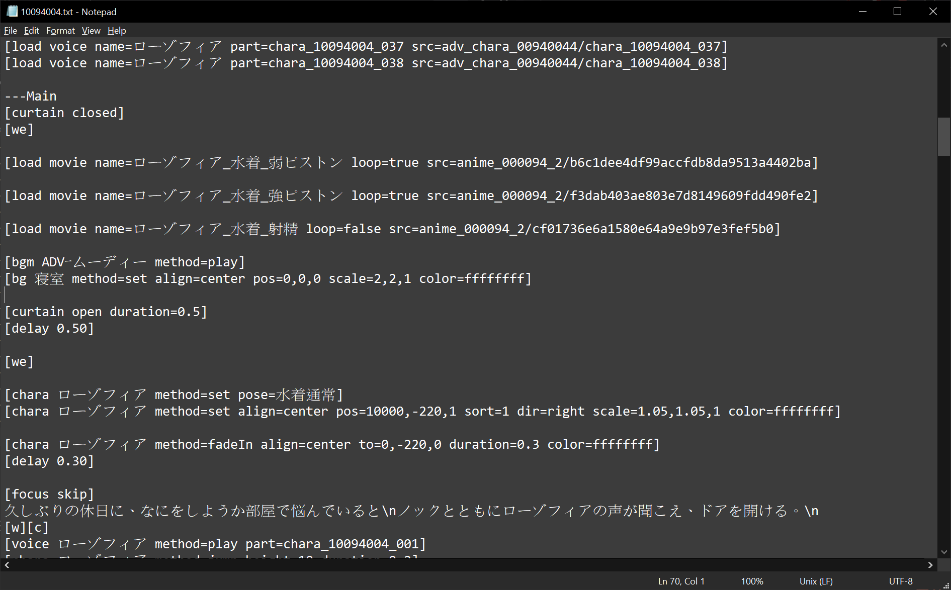 寢文本(寢動畫路徑放在文本)只能從後端拿到,用GeePlus.GPUL.Peerless.ScriptEngineCore::LoadScriptDump出來。
