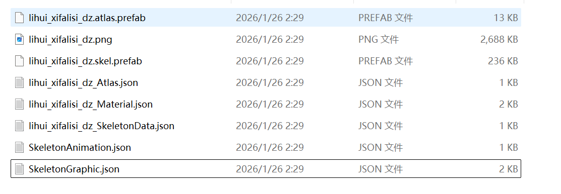 只需移除 .prefab 扩展名,以便该工具可以读取正确的格式。 .atlas.prefab => .atlas .skel.prefab => .skel