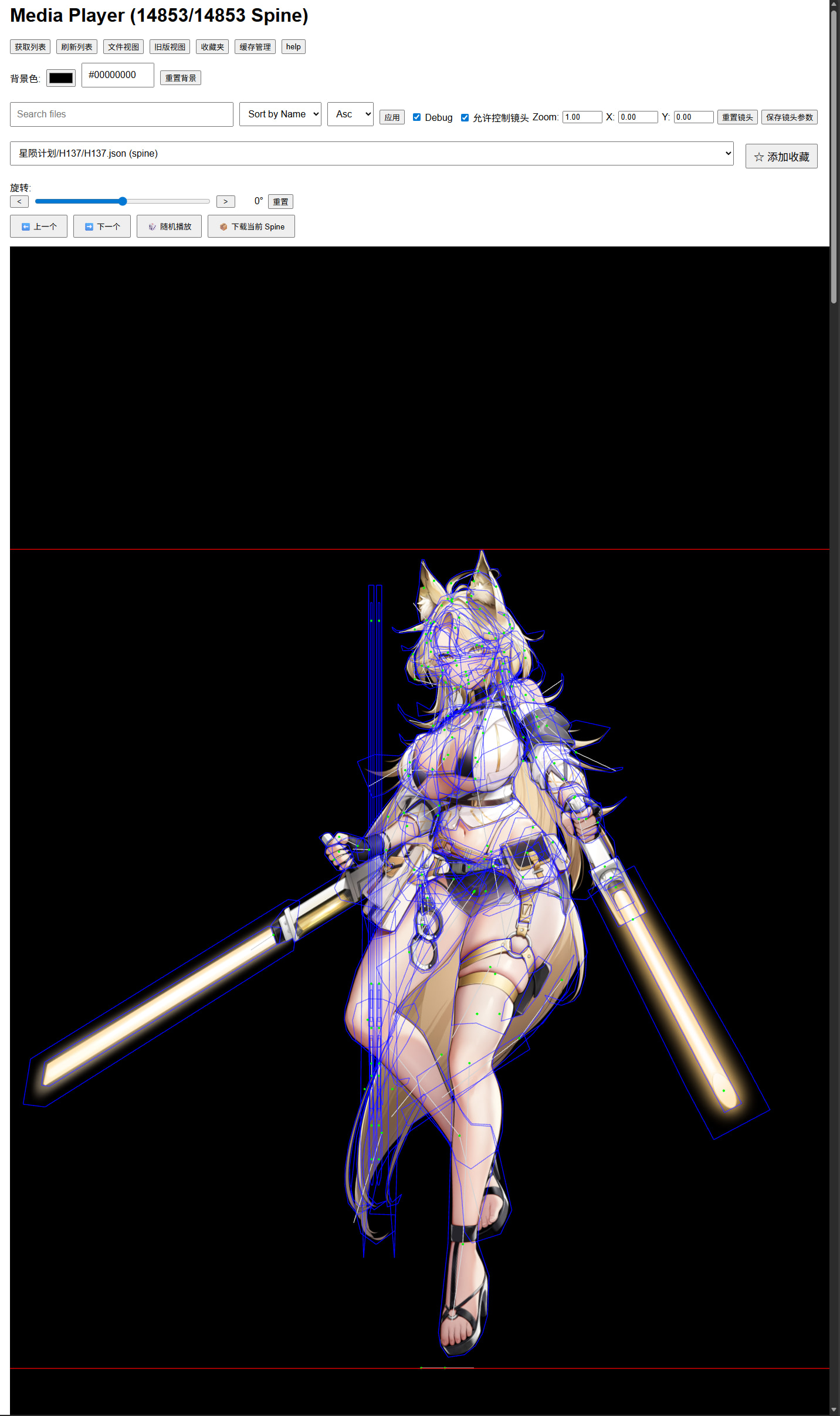 另外关于动画被拆分的问题,目前查看器的渲染逻辑是一次只加载一组skel和atlas,而Azur Lane的部分角色是由多个skel和atlas组成不同部件,因此只会显示其中一部分。后续我也会研究将多个资源进行分组并叠加渲染的实现方案,不过这部分涉及到较多设计和实现工作,可能需要一些时间。