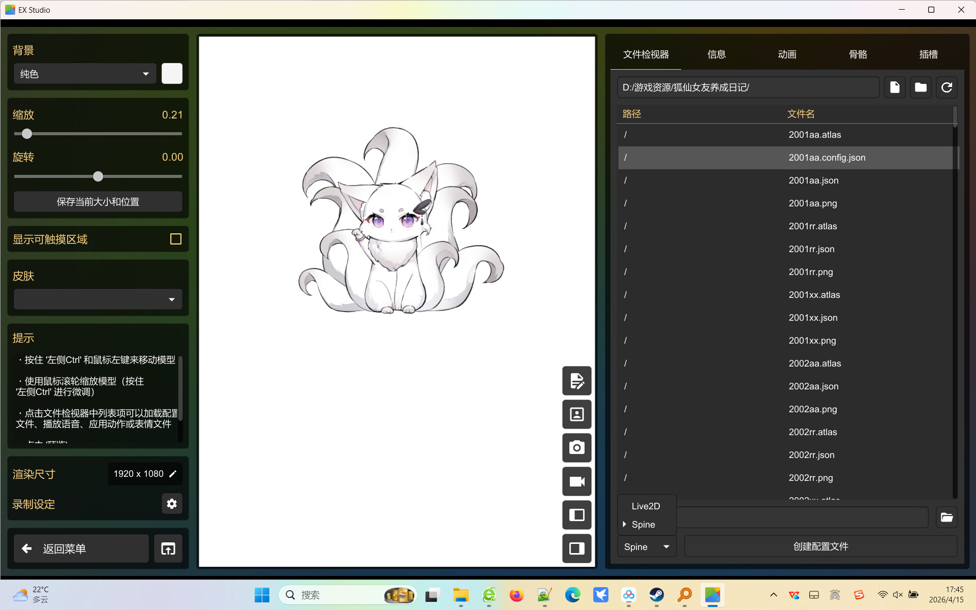 1、我想尝试制作上传麻雀一番街的模型到Live2DViewerEX的创意工坊,但是spine模型我是用skeletonViewer能够打开正常播放,但是使用EX工作室就不行,提示模型读取失败,检查配置文件,这是咋回事,该怎么解决;