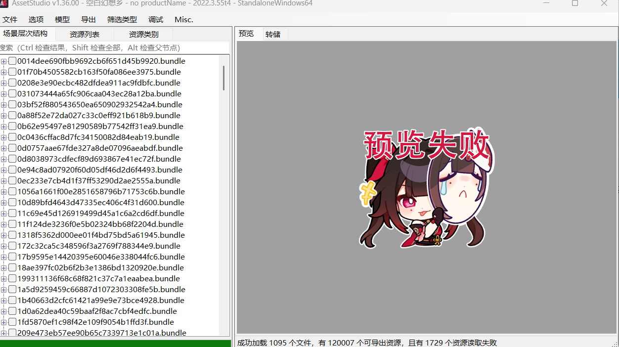 经典问题,这个assetstudio太老了,不支持团结引擎还有6000这些版本。你站内搜个更新的就行了。雀姬是团结引擎,这个1.36的版本不支持。